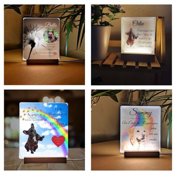 Die Fotolampe mit Bildern von verstorbenen Haustieren ist eine schöne Möglichkeit, um die Erinnerung an deinen geliebten Vierbeiner wachzuhalten.